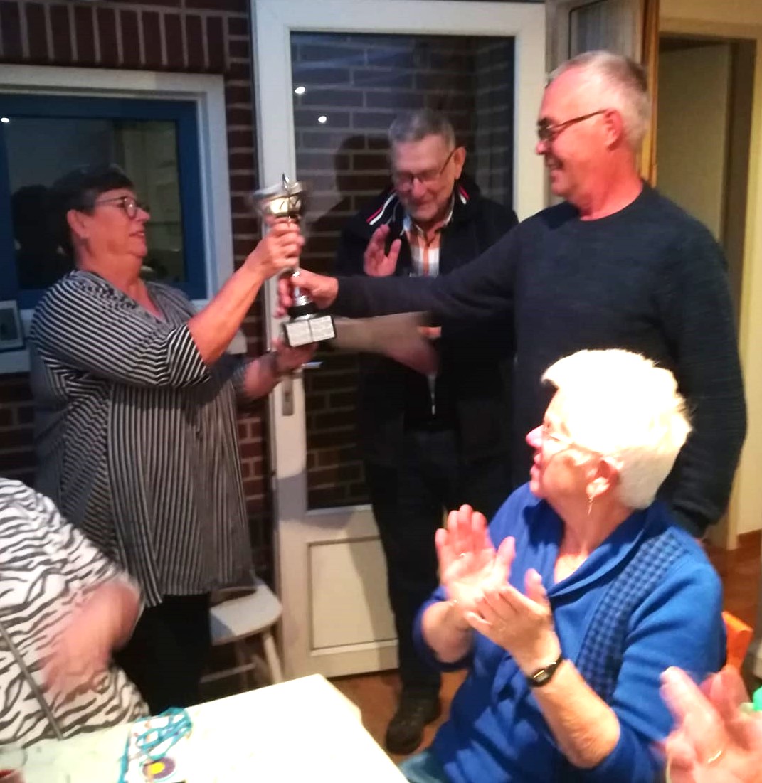 Met 20 deelnemers de hele zomerperiode gespeelt te hebben, is de Toon Hurkmans wisselbeker gewonnen door Henry de Groot. Tweede Adriaan Hurkmans en derde is Willy van de wiel . Gerrie en Tonnie werden bedankt voor de verzorging van de koffie, en Tonnie voor het bij houden van de standen. Henry werd bedankt voor het bijhouden van de banen. Na deze uitreiking bij Gerrie werd er nog gezellig na gebuurt onder het genot van een hapje en drankje.