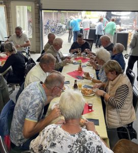 We vertrokken bij Theo met 47 leden waarvan er 10 in de huifkar van Clemens. Waarin het goed zitten was en een mooi muziekje op de achtergrond was het erg gezellig, Clemens bedankt . We fietsen een rondje van 23 km door de mooie natuur in en om Wilbertoord, deze route uitgezet door Henry en Johan. En bij terugkomst stond de koffie klaar in de mooi versierde loods bij Theo en Mimi, nogmaals bedankt voor de gastvrijheid. Om vier uur kwam de catering Manders voor ons een lekker broodje met beenham of kip – saté bakken, met diverse salades erbij. wat we ons weer goed lieten smaken. Na nog gezellig na buurten zat deze burendag er weer op. Met dank aan het Oranje fonds en onze sponsor Paneel Plus uit Wilbertoord.