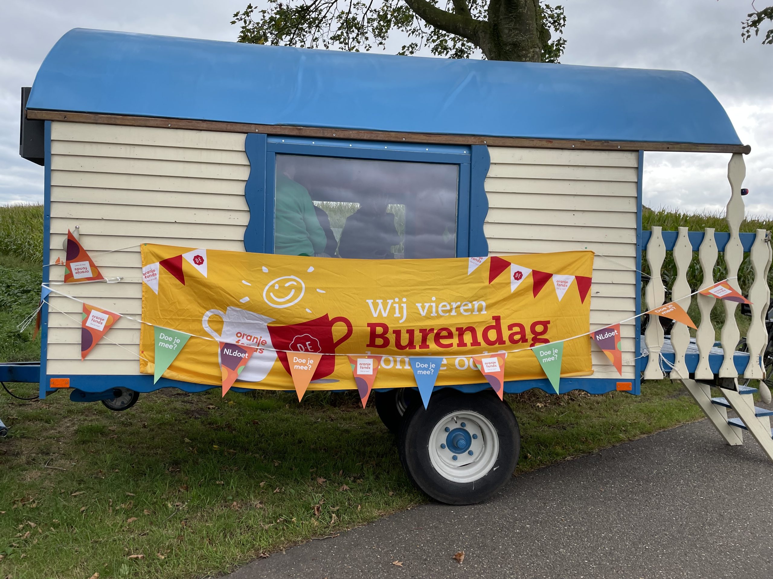 We vertrokken bij Theo met 47 leden, waarvan er 8 in de huifkar van Clemens waarvoor dank aan Clemens. We fietsten een rondje van 22 km in en om Wilbertoord. Bij terugkomst stond de koffie met koek klaar in de mooi versierde loods bij Theo en Mimi, die wij nogmaals bedanken voor de gastvrijheid. Om vier uur kwam Dennis met zijn friet wagen voor een lekker frietje en enkele snacks bakken,die erg goed in de smaak vielen bij onze leden. Na nog gezellig na-buurten zat deze burendag er weer op. Met dank aan het Oranjefonds en onze