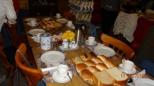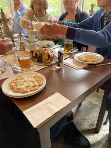 lunch met duitse waffel en tinnen koffiekan z.g.Droppelmina